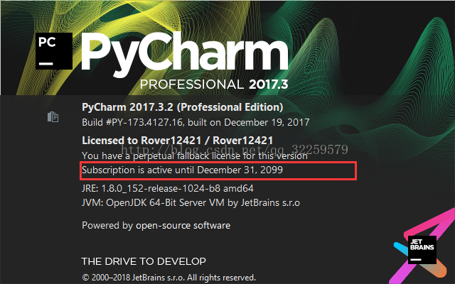 step4: 验证是否是有效期是否截止到2099年 点击 pycharm的help->about查看: