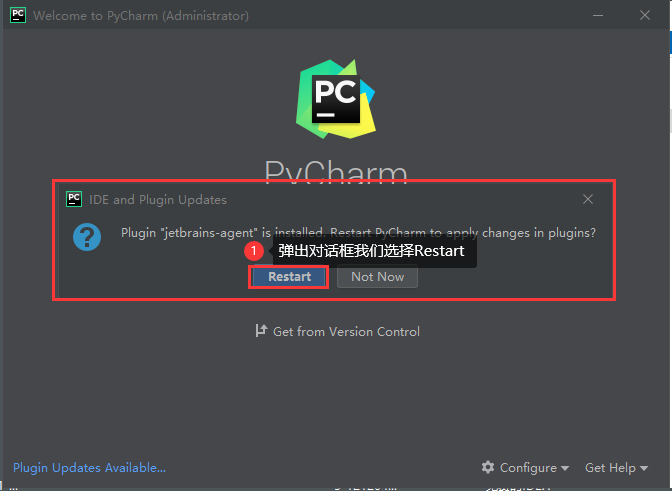 点击“Restart”按钮重启PyCharm2020.1.2。