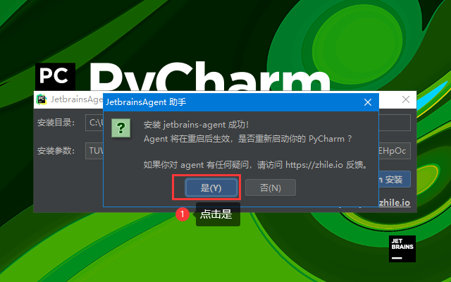 把下载好的jetbrains-agent-latest.zip文件直接拖到PyCharm2020.1.2 应用程序窗口中去会弹出下面的对话框: