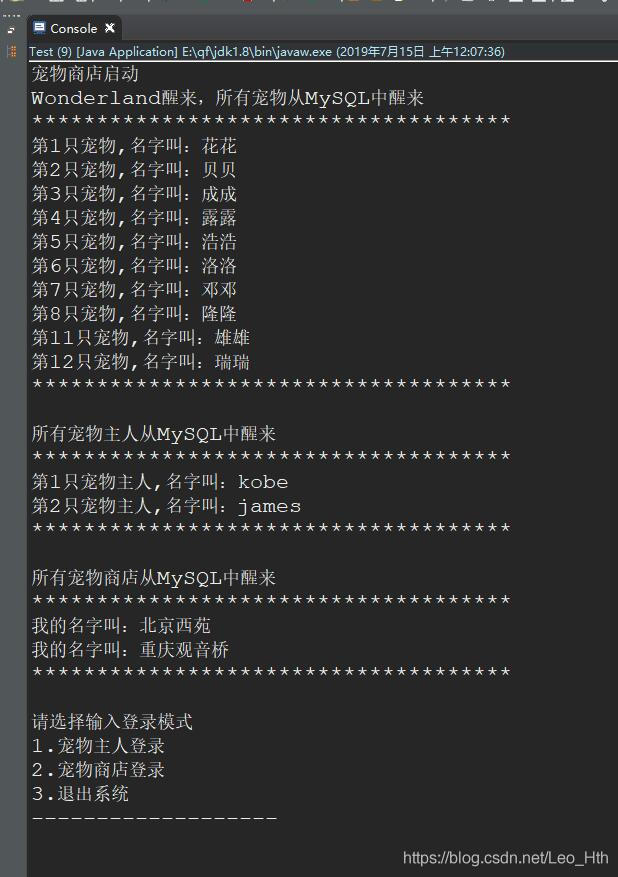 System.out.println("Wonderland醒来,所有宠物从MySQL中醒来");