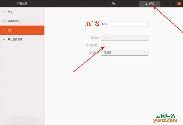 导航到设置 - >详细信息 - >用户。要开始,首先打开解锁按钮并输入您的管理密码。准备就绪后,将自动登录开关转到ON位置。推荐使用该方法,因为直观简单。