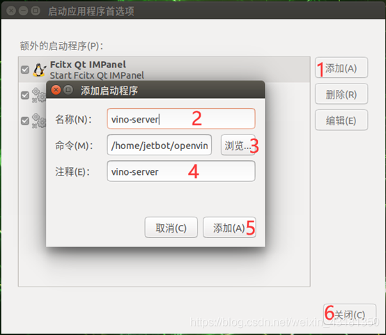 (2)按照图示序号依次操作第2和4可以随意填,第3就是选择我们刚才在主目录下创建的openvino可执行文件,添加完成关闭窗口就行了。