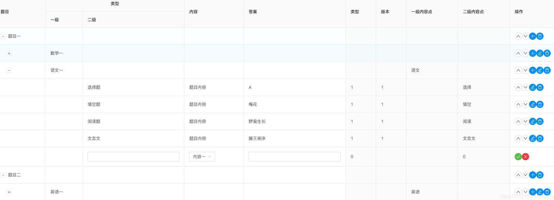 下面直接上一下代码及代码效果,这是一个三级的树形表格,且其中包含二级标题。