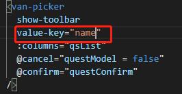 那么像这样的数组该怎么显示呢, vant-picker的value-key属性就是解决这个问题的,如我要使用上面的数组,那么vant-picker