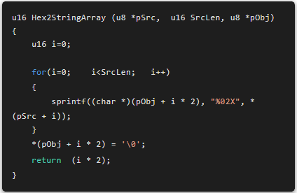 效果:十六进制:0x13 0xAA 0x02转为字符串:”13AAA2”