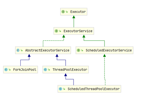 上面看到的类图,方便帮助下面的理解和查看,我们可以看到一个核心类 ExecutorService , 这是我们线程池都实现的基类,我们接下来说的都是它的实现类。