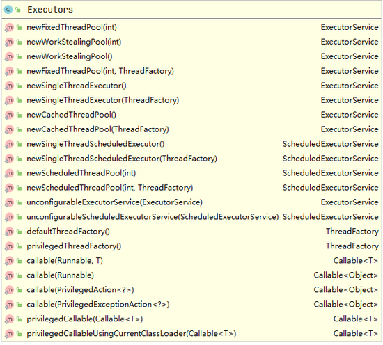 | FixedThreadPool | SingleThreadExecutor | CachedThreadPool | ScheduledThreadPool | SingleThreadScheduledExecutor | |