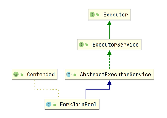 ForkJoinPool ForkJoinPool 这是一个在 JDK7 引入的新新线程池,它的主要特点是可以充分利用多核 CPU , 可以把一个任务拆分为多个子任务,这些子任务放在不同的处理器上并行执行,当这些子任务执行结束后再把这些结果合并起来,这是一种分治思想。 ForkJoinPool 也正如它的名字一样,第一步进行 Fork 拆分,第二步进行 Join 合并,我们先来看一下它的类图结构