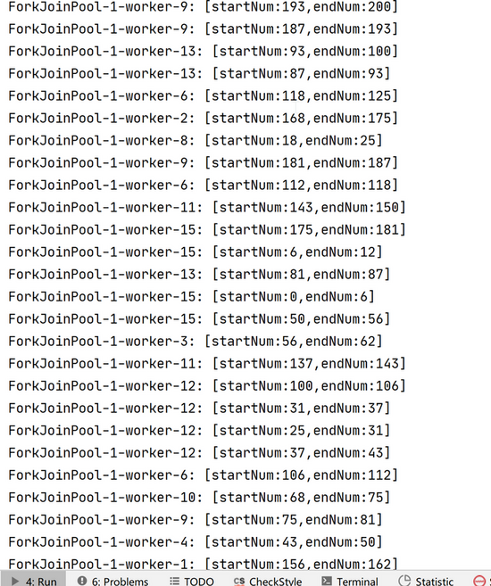 目标: 打印0-200以内的数字,进行分段每个间隔为10以上,测试forkjoin
