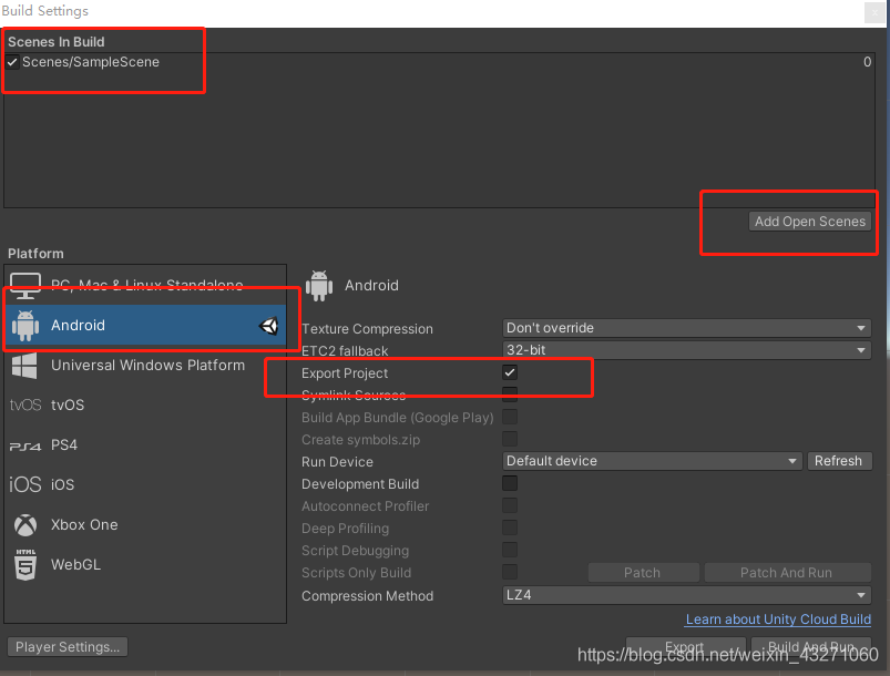 然后在Build Settings中将平台切换到Android
