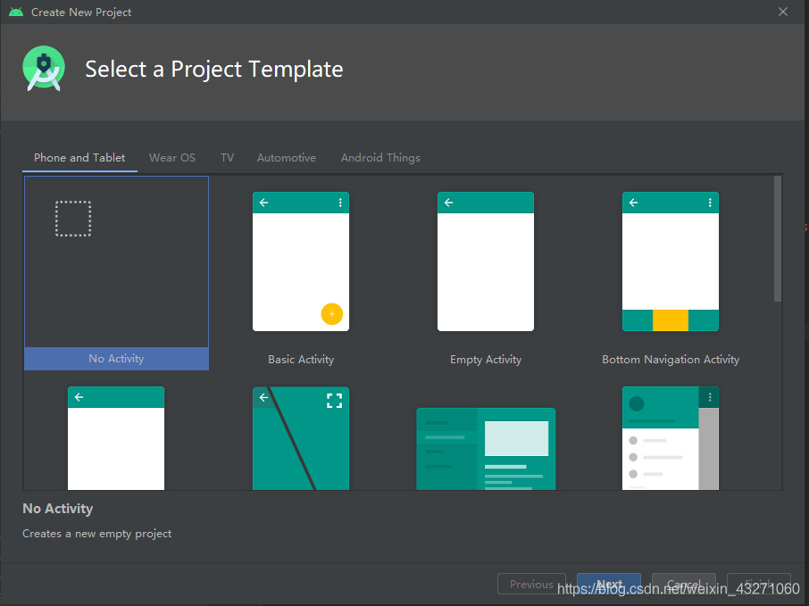 选择NoActivity->Next
