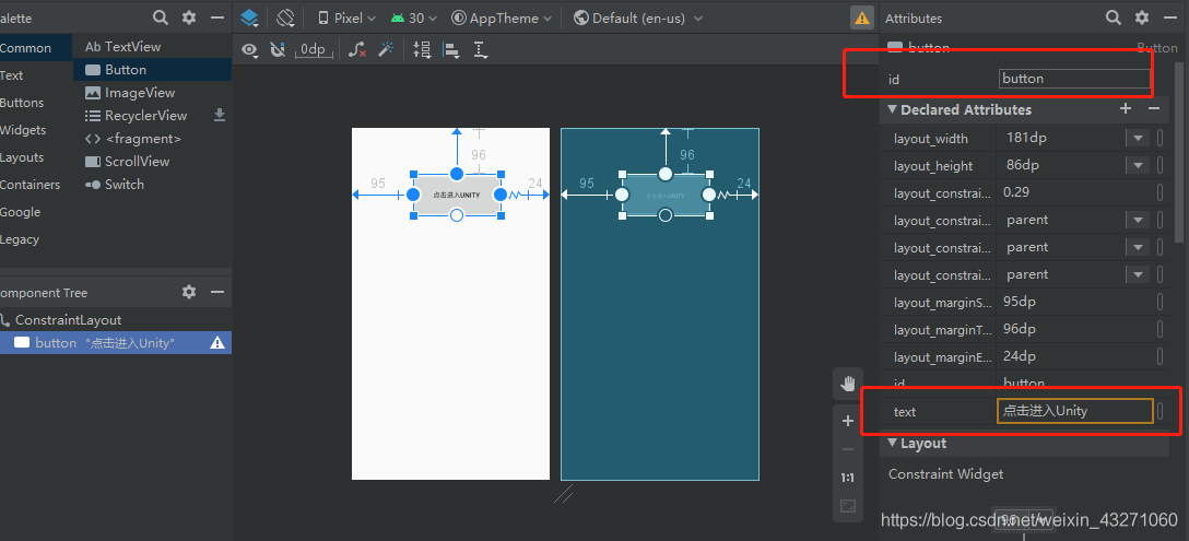 将下图中的Button拖拽到白框内