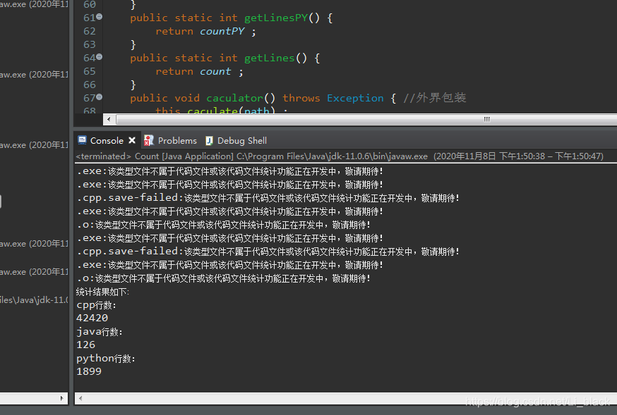 "\njava行数:\n"+countJAVA +