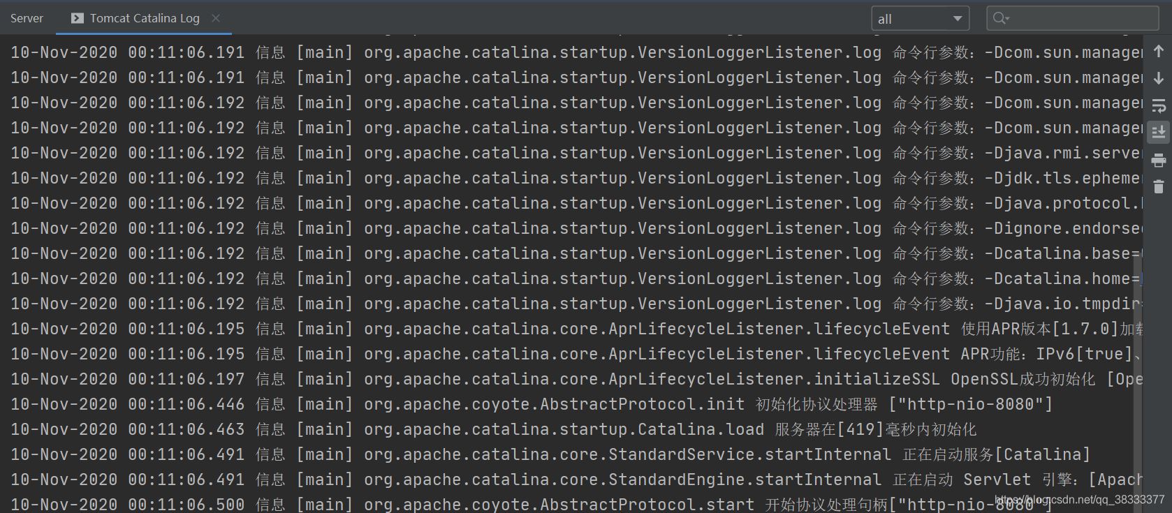运行环境,Idea2020版本,Tomcat10,运行的时候Tomcat CatalinaLog控制台中出现乱码