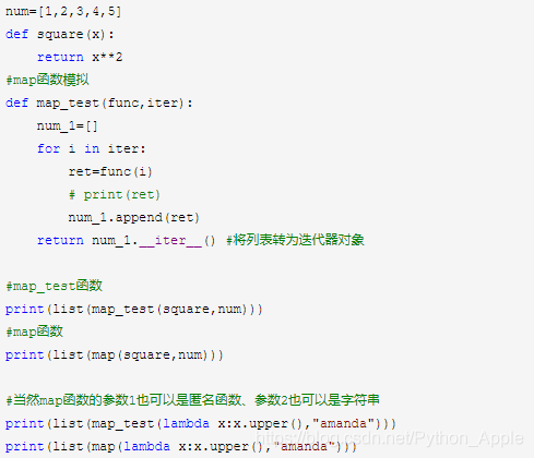 map函数接收的是两个参数,一个函数,一个序列,其功能是将序列中的值处理再依次返回至列表内。其返回值为一个迭代器对象