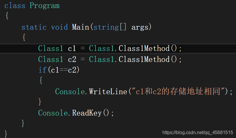 Console.WriteLine("c1和c2的存储地址相同");