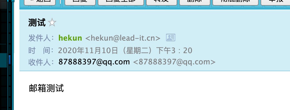 公司企业邮箱(企业级的网易邮箱允许第三方客户端不通过授权码)通过邮件密码发送邮件到qq邮箱,qq邮箱收到邮件如下: