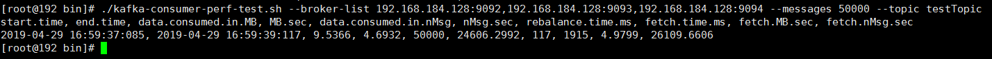 ./kafka-consumer-perf-test.sh --broker-list 192.168.184.128:9092,192.168.184.128:9093,192.168.184.128:9094 --messages 50000 --topic testTopic
