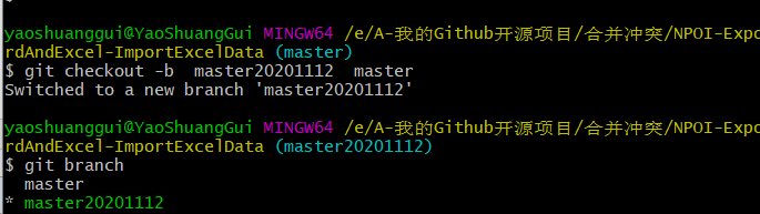 3、创建并切换到该分支,并同步到master中