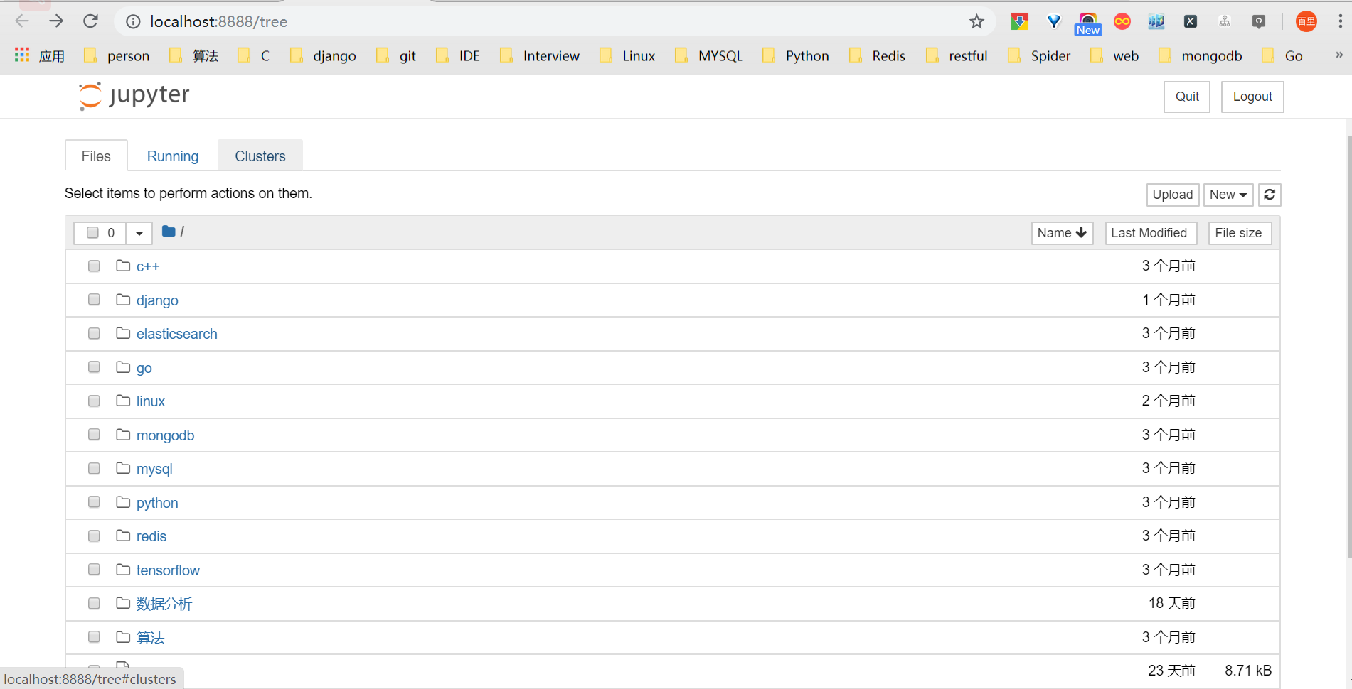 下面是我修改jupyter notebook默认路径后打开的jupyter notebook初始界面如下: