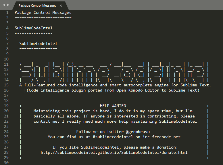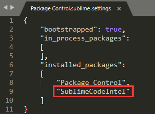 4.安装完成之后,文本框会出现如下显示,或者可以通过【Preferences>Package Settings】中查看到已安装的sublimecodeintel插件