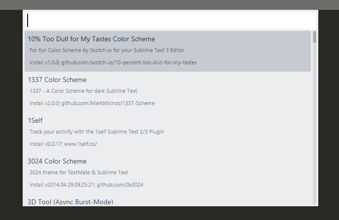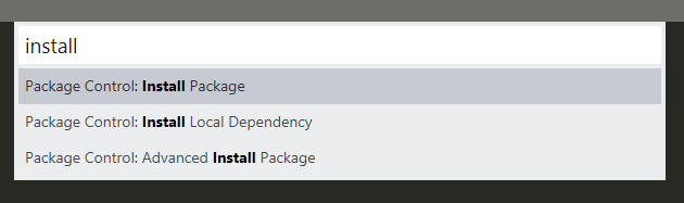 2. 输入"package",在下拉列表找到"Package Control: list packages",选中后回车,可以显示全部插件列表。