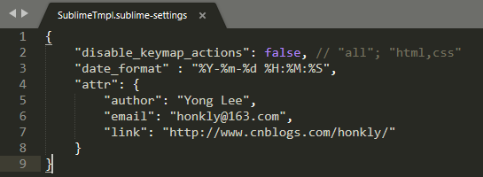 1、安装SublimeTmpl插件后,打开Preferences->Package Settings->SublimeTmpl->Settings User,添加以下内容