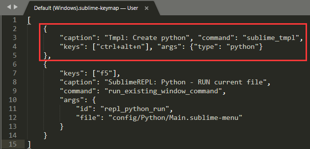 注:上面代码仅适用于Sublime Text 3,如果是Sublime Text2请使用如下代码: