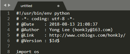打开Sublime Text 3,上文中SublimeTmpl插件设置的快捷键是"Ctrl+alt+n",按快捷键后成功新建文件如下