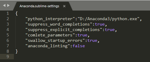 2、Preferences->Package Settings->Anaconda->Settings User,添加如下内容