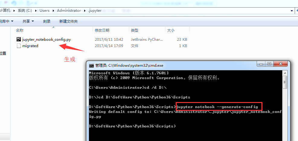 打开“C:\Users\Administrator\.jupyter”文件夹,可以看到里面有个配置文件。