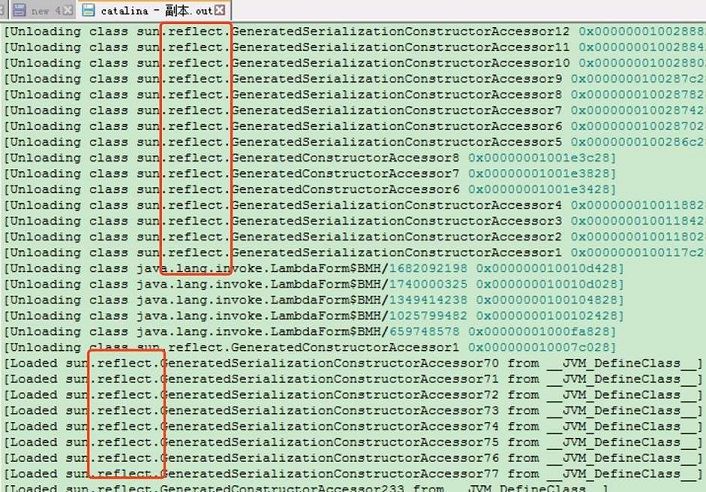 上图里大量的sun.reflect.GeneratedSerializationConstructorAccessor,GeneratedMethodAccessor就是这样产生的。