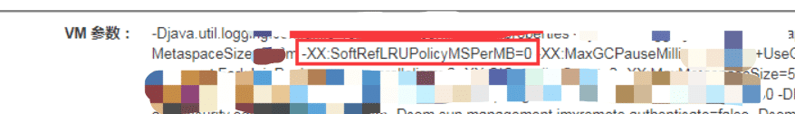 而SoftReference是否被回收又跟SoftRefLRUPolicyMSPerMB参数的值有关系,查看我们线上JVM的配置发现XX:SoftRefLRUPolicyMSPerMB这个参数设置的是0
