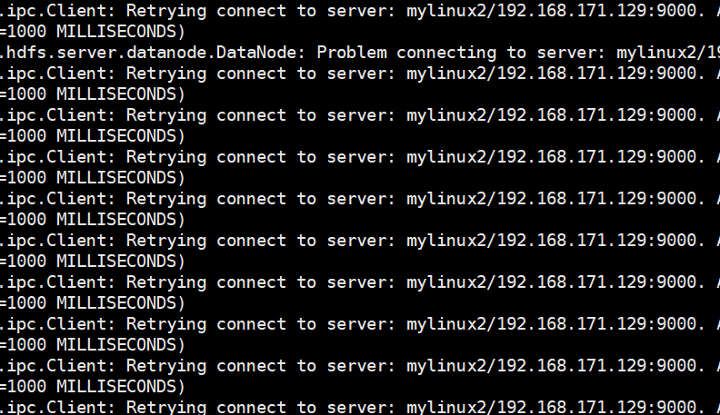 如果出现这个说明连接配置有问题,查看core-site.xml配置,这个是配置datanode和namnode通信的: