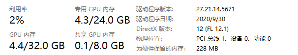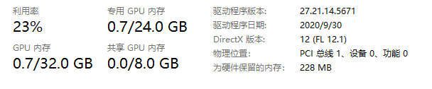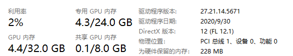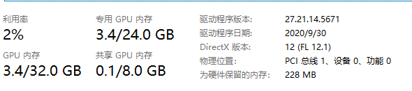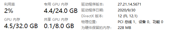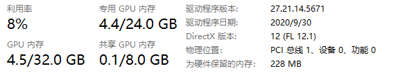 打开任务管理器查看主存与显存情况。情况分别如下: