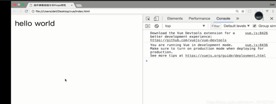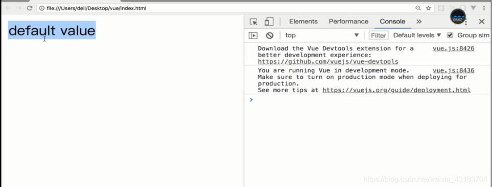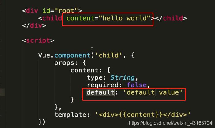当父组件中的content值没有传入时,子组件利用default属性设置默认值,此情况时,页面会显示default value。