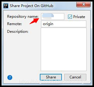 2 .填写 Repository name,即仓库名。 private,可选,勾选后项目不可公开访问description,可选,项目描述