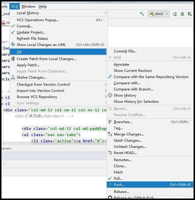 2.commit后,IDEA --> VCS --> Git--> Push