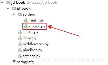 执行完该命令后,将会在 jd_book 的 spiders 目录下生成一个 jdbook.py 文件 :