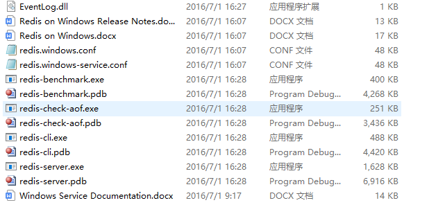 redis.windows-service.conf:Redis启动服务默认加载的配置文件(下文会介绍如何将Redis服务已Windows服务模式启动),双击redis-server.exe启动时并不加载该文件,双击exe启动时会提示未指定配置文件,使用默认配置,这个默认配置应该是exe内部编写的。