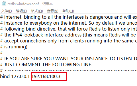 注意:redis.windows.conf文件默认配置的IP需要修改成本机的IP,window服务才能正常启动。
