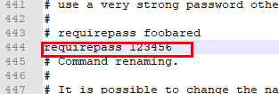 打开redis.windows.conf文件,搜索【# requirepass foobared】定位到配置密码的行(配置文件中#为注释符),然后在该行下方输入requirepass 123456,其中123456就是数据库的密码了,如下图所示: