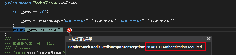 这是因为我们上文配置的连接字符串是【localhost:6379】这里面只有IP和端口,现在因为有了密码所以这个字符串不在合法了。
