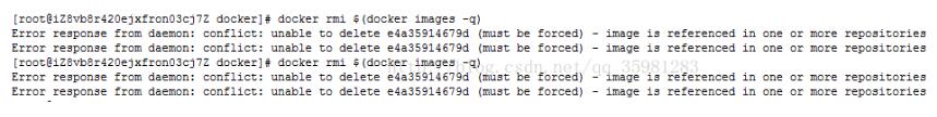 所以我想删除所有镜像docker rmi $(docker images -q),出现下面错误