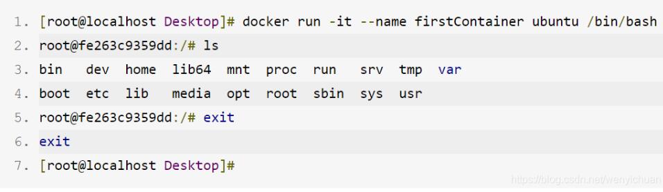 创建并启动一个容器,容器中具有ubuntu的运行环境,容器名为firstContainer,为容器分配一个终端,与用户进行交互。