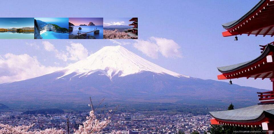 网页中有四个图片,点击不同的图片,更换相对应的背景。