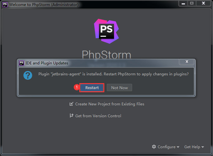 点击上图中的标注1“Restart”按钮重启phpstorm,重新启phpstorm时弹出如下图所示的JetbrainsAgent配置助手窗口