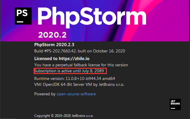 2020年11月份phpstorm最新激活码分享给大家,如果你的phpstorm过期了或是安装最新版的phpstorm2020.2.3可以使用下面的phpstorm激活码,我的phpstorm2020.2.3激活成功