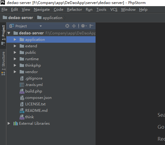⑥使用 PHPstorm 集成 thinkPHP、Apache: 1)使用 PHPstorm 打开 thinkPHP 项目,我这里更名为 dedao-server;