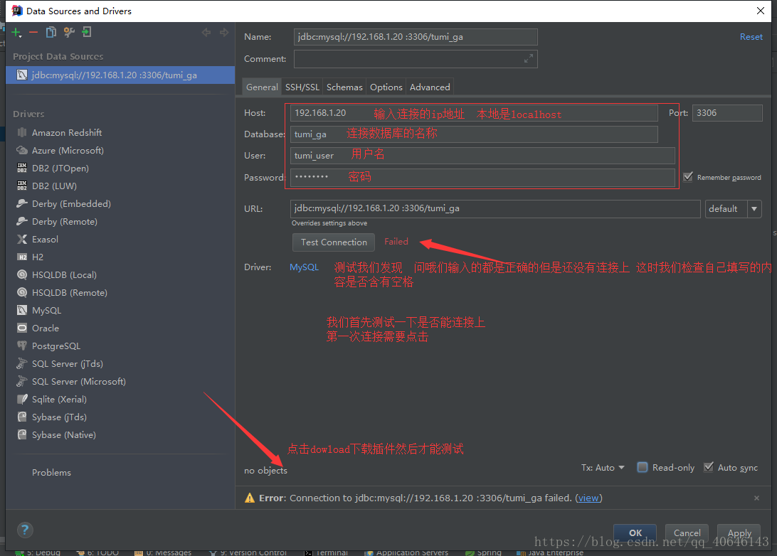 IDEA配置连接MYSQL数据库遇到Failed这个问题解决